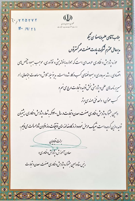 بدینوسیله، از تمامی همکاران پرتلاش، کارفرمایان گرامی و شرکای ارزشمند که با اعتماد و همکاری خود مسیر رشد و تعالی پارت صنعت را هموار ساختهاند، صمیمانه قدردانی مینماییم. اطمینان داریم با استمرار این همافزایی، آیندهای روشنتر برای صنعت انرژی پاک و هوشمند ایران رقم خواهیم زد.